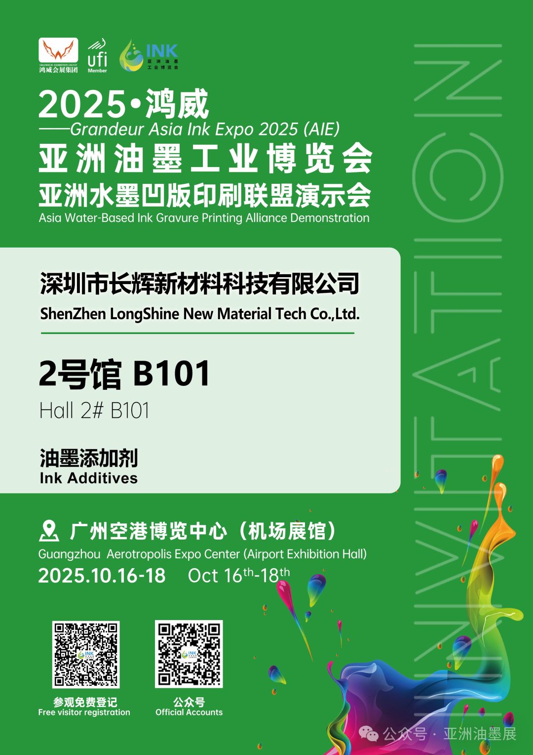 届时将为大家展示助剂新优产品与服务在2025亚洲油墨工业博览会现场与您不见不散!