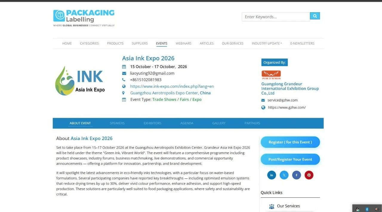 亚洲油墨展登陆全球包装标签资讯平台Packaging Labelling,助推绿色印刷产业对接