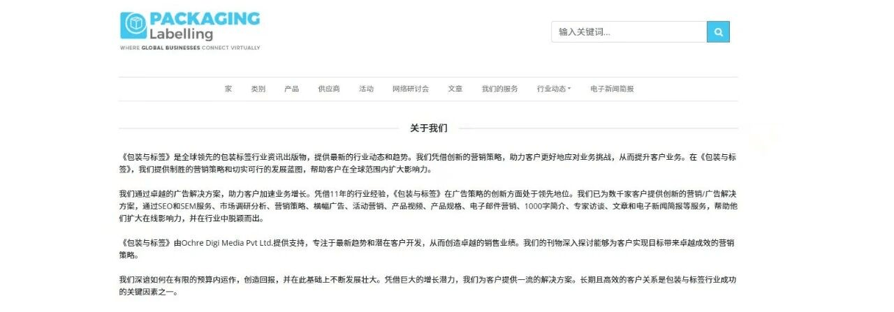 Packaging Labelling 是包装与标签行业领先的国际资讯出版物,致力于提供行业动态、趋势分析与创新营销解决方案。平台依托 Cohre Digi Media Pvt Ltd 的专业支持,通过内容营销、活动推广、潜在客户开发等服务,帮助企业在全球市场中提升影响力、实现业务增长。