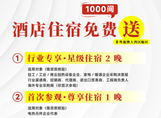 特别说明:免费住宿仅面向非粤港澳大湾区地区专业观众提供。名额共计1000间,额满即止!